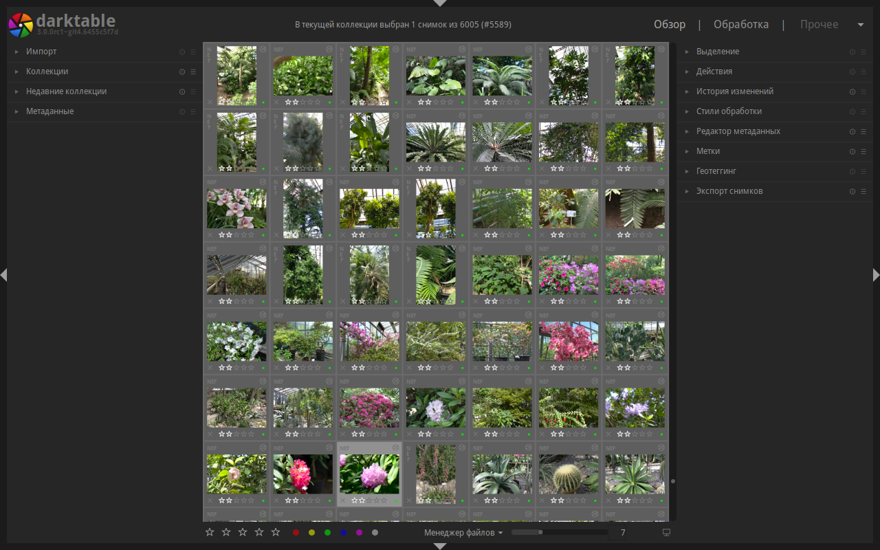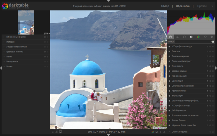 > Поддержка операций undo/redo в режиме светового стола (lighttable) для меток, цветовых меток, рейтингов, метаданных, истории редактирования и применяемых стилей.