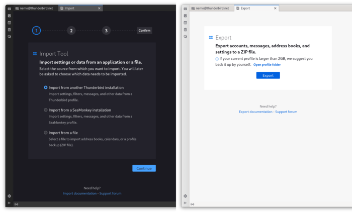 Экспорт профиля - для тех кто сам не осилил пользоваться копированием папки профиля? Нет чтоб можно было выбирать, что именно экспортировать для переноса на другую машину. Почту программа с сервака и сама может забрать. А так в папке Profiles черт ногу сломит, куча файлов - не понятно какие именно нужны при переносе настроек, фильтров и т.д., а какие нет.