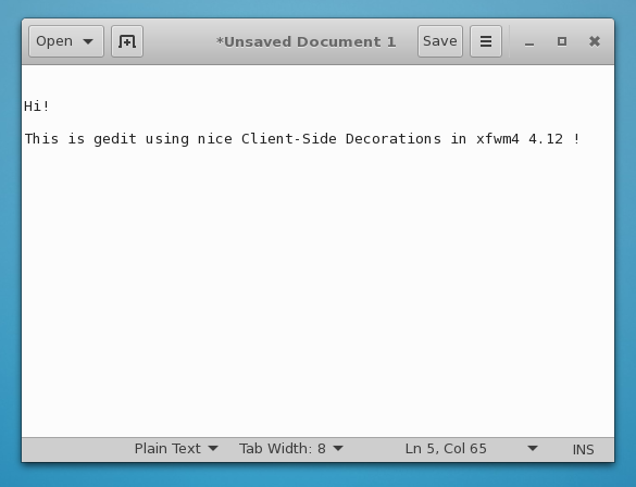 > В оконном менеджере xfwm4 обеспечена поддержка появившихся в GTK3+ возможностей определения декорации окон на стороне клиента (CSD, Client-Side Decorations)