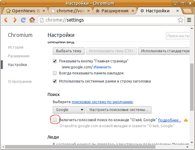 Господа, а как выявить наличие этого дополнения, если у меня chrome://voicesearch не работает? Выдаёт что адрес не доступен (Kubuntu)
