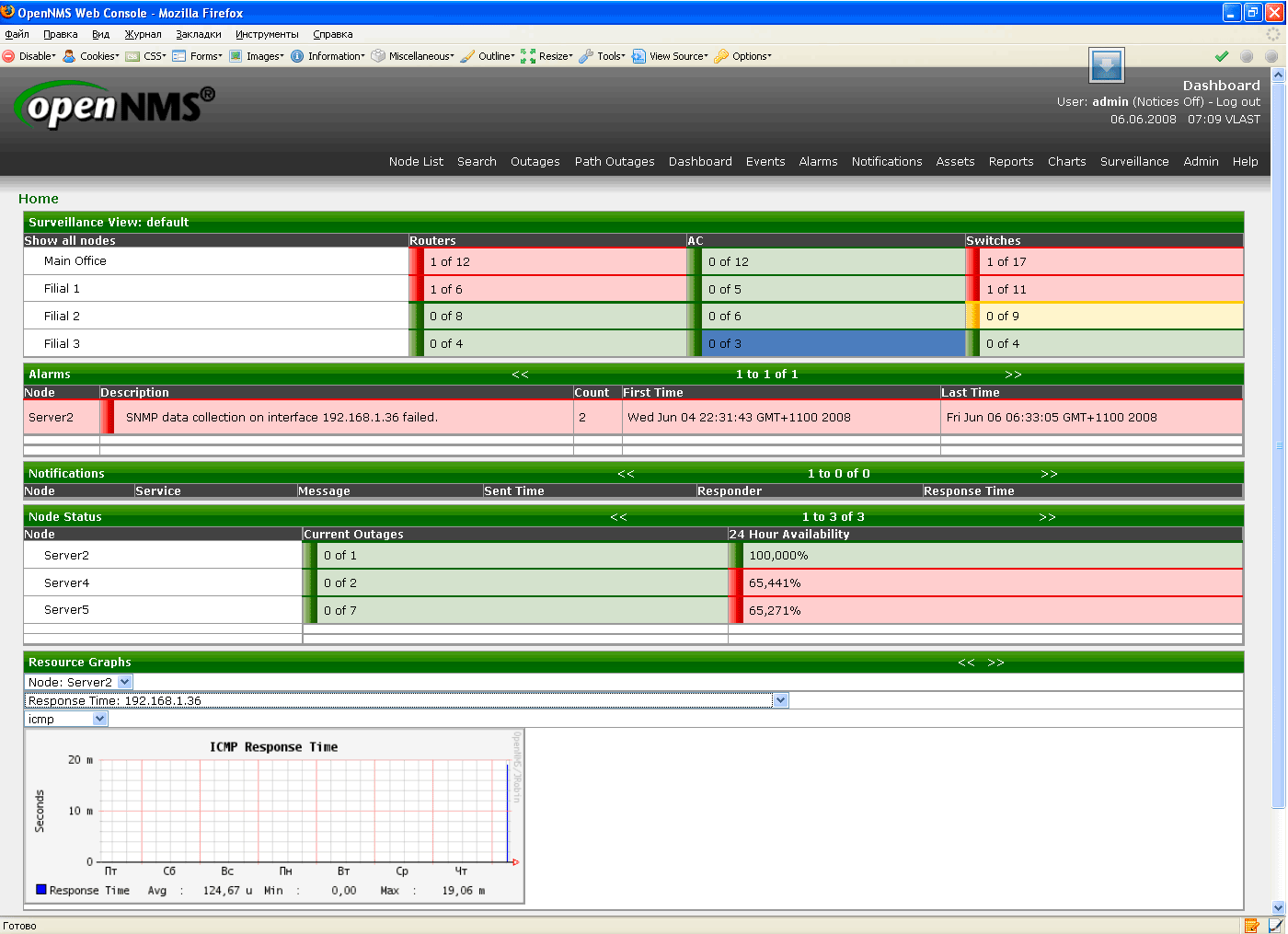 Какую же информацию мы можем получить после начальной настройки OpenNMS