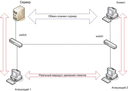 атакующий, будет отбрасывать пакеты назад. Рассмотрим это на двух