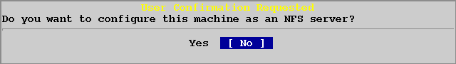 Эти службы могут быть настроены и после установки посредством команды /stand/sysinstall. Если у вас нет необходимости в установке Network File System сервера и клиента, выбирите [No] как показано в этом примере.