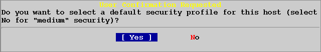 Нажмите [No] для выбора "medium" - среднего уровня безопасности, (рекомендуется для новичков).