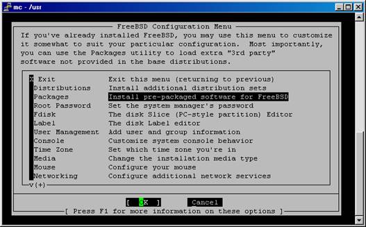 Примечание: установка пароля для ROOT , добавление пользователей и другие "вещи" я делаю потом через / stand / sysinstall .