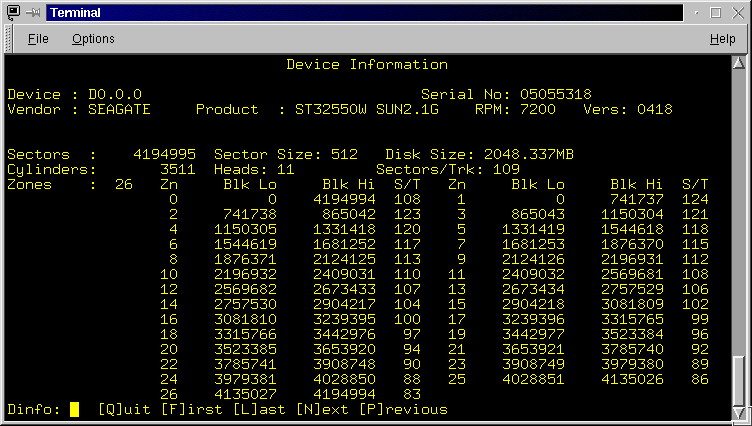 The next set of lines provide a summary of the Raid Sets configured on the RaidRunner. The summary includes the raid set name, it's type, it's size, the amount of cache allocated to it and a comma separated list of it's backends. See rconf in the "Advanced Topics" section for a full description of the above.![]()