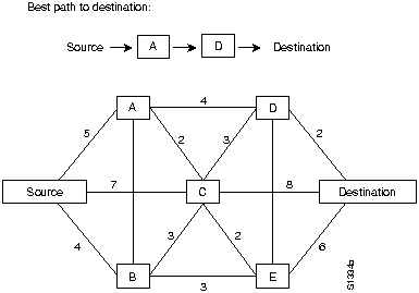 Маршрутные решения DECnet базируются на затратах (cost)-арбитражном показателе, назначаемом администратором сети для использования при сравнении различных путей через среду об'единенной сети. Затраты обычно базируются на числе пересылок, ширине полосы носителя и других показателях. Чем меньше затраты, тем лучше данный тракт. Если в сети имеют место неисправности, то протокол маршрутизации DECnet Phase IV использует значения затрат для повторного вычисления наилучшего мааршрута к каждому пункту назначения. Рис. 17-3 иллюстрирует расчет затрат в среде маршрутизации DECnet Phase IV.