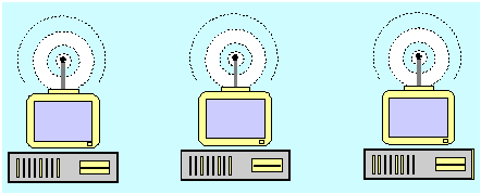 Технология беспроводных сетей развивается довольно быстро. Эти сети удобны для подвижных средств в первую очередь. Наиболее перспективным представляется проект IEEE 802.11, который должен играть для радиосетей такую же интегрирующую роль как 802.3 для сетей Ethernet и 802.5 для Token Ring. В протоколе 802.11 используется тот же алгоритм доступа и подавления cтолкновений, что и в 802.3, но здесь вместо соединительного кабеля используются радиоволны (Рис. 4.1.8.1.)