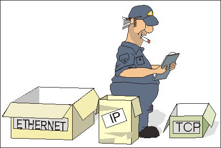 Рис. 4.1.1.3.6. Пример фрагментации пакета Куда будет направлен Ethernet-кадр, указывает значение для типа в заголовке кадра (рис. 4.1.1.3.5). Если IP-пакет попадает в модуль IP, то содержащиеся в нем данные могут быть переданы либо модулю TCP (Transmission Control Protocol), либо UDP, что определяется полем "протокол" в заголовке IP-пакета. Одним из основополагающих понятий в теории маршрутизации является автономная система (AS). Автономную систему составляет IP-сеть (или система из нескольких IP-сетей), проводящая единую политику внешней маршрутизации и имеющая одного или более операторов. Все AS имеют уникальные номера. Идеология AS позволяет решить проблему безудержного роста размера таблиц маршрутизации. Построение узла Интернет неотделимо от формирования локальной сети, поэтому прежде чем перейти к углубленному описанию протоколов TCP/IP, введем определения некоторых сетевых устройств, без которых построение локальной сети невозможно. |