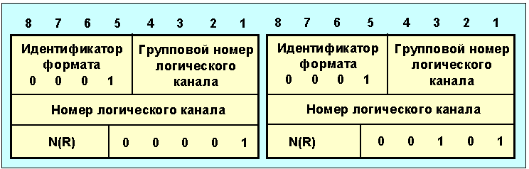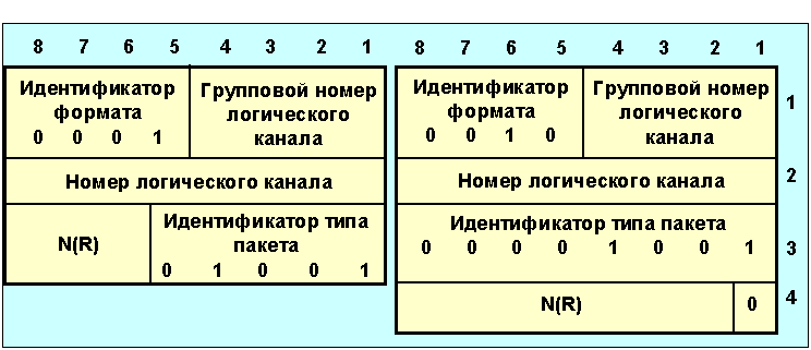 Рис 4.3.2.10. Формат пакетов готовность к приему и неготовность к приему при нумерации по модулю 8.