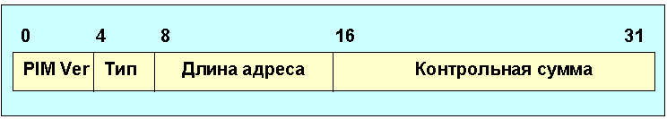 Может так случиться, что размер сообщения join/prune превысит MTU сети. В этом случае сообщение может быть фрагментировано, информация, относящаяся к различным группам, будет послана в разных пакетах. Однако, если сообщение join/prune должно быть фрагментировано, полный prune-список, соответствующий группе G, должен быть включен в одно сообщение join/prune согласно RP-дереву join для G. Если такая семантическая фрагментация невозможна, при транспортировке пакетов от соседа к соседу должна использоваться IP-фрагментация. Для любой новой записи (s,g), (*,g) или (*,*,rp), сформированной входящим сообщение join/prune, бит SPT сбрасывается. Если запись имеет таймер join/prune-suppression, полученное сообщение join/prune не указывает на маршрутизатор в качестве места назначения, тогда принимающий маршрутизатор рассматривает join- и prune-списки, с тем чтобы выяснить, нет ли там адресов полностью соответствующих существующим состояниям (s,g), (*,g) или (*,*,rp), для которых принимающий маршрутизатор осуществляет рассылку сообщений join/prune. Элемент join- или prune-списка полностью соответствует маршрутной записи, только тогда, когда их IP-адреса и RPT-флаги тождественны. Если приходящее сообщение join/prune полностью соответствует существующим записям (s,g), (*,g) или (*,*,rp), а сообщение join/prune приходит на входной интерфейс для данной записи, маршрутизатор сравнивает holdtime сообщения со своим собственным значением join/prune-holdtime. Если его значение join/prune-holdtime меньше, запускается таймер join/prune-suppression. Если join/prune-holdtime равно holdtime сообщения, коллизия разрешается в пользу отправителя сообщения join/prune, который имеет больший ip-адрес. Когда время join/prune таймера истекает, маршрутизатор отправляет сообщение join/prune для соответствующей маршрутной записи. Когда отправитель начинает отправку данных группе, его пакеты инкапсулируются в сообщения register и посылаются в RP. Если скорость передачи гарантируется каналом, RP устанавливает соответствующее состояние для отправителя и начинает посылать сообщения (s,g) join/prune отправителю с S в join-списке. Когда DR получает сообщение register-stop, он перезапускает таймер register-suppression в соответствующей записи (s,g) на register-suppression-timeout секунд. Если имеются данные, которые должны быть зарегистрированы, DR может послать RP сообщение register нулевой длины, за probe-time секунд до истечения времени таймера register- suppression. Сообщения assert используются для принятия решения, какой из параллельных маршрутизаторов, подключенных к локальной сети с множественным доступом, должен быть ответственным за ретрансляцию пакетов в LAN. Все управляющие сообщения PIM имеют номер протокола 103. Сообщения PIM являются либо уникастными (например, registers и register-stop), либо мультикастными для группы `all-pim-routers' `224.0.0.13' (например, join/prune, asserts, и т.д.). Формат заголовка пакета протокола PIM показан на рис. 4.4.9.5.3.