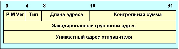 Поле длина адреса характеризует длину кода адреса в байтах. Поле контрольная сумма вычисляется методом суммирования всего pim-сообщения по модулю 1, это поле имеет длину 16 бит. Формат закодированного группового адреса показан на рис. 4.4.9.5.4.