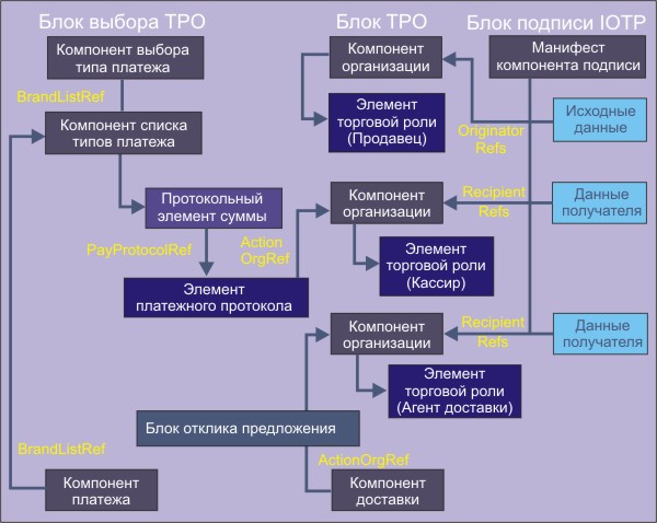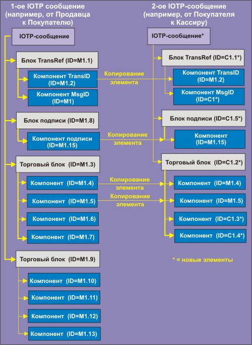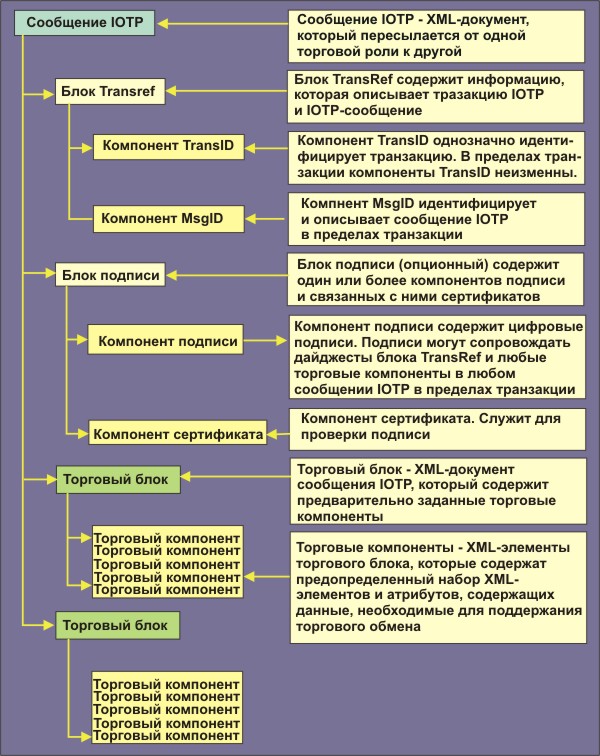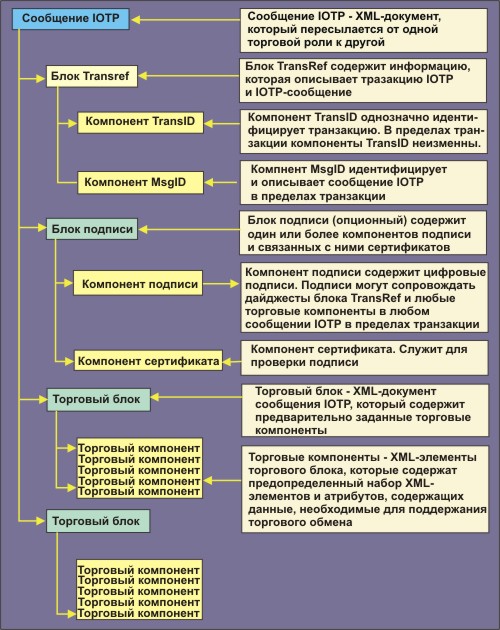 содержаться в IOTP-сообщениях, которые пересылаются в форме XML-документов от одной торговой роли к другой.