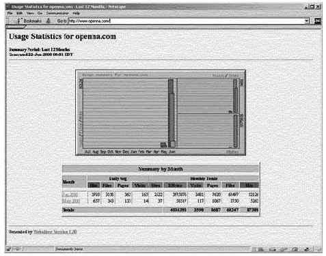 Webalizer - это программа для анализа файлов регистраций веб сервера, которая создает отчеты в HTML формате для просмотра в броузере. Результаты представляются в виде таблиц и графиков, которые облегчают интерпретацию полученной информации. Программа наряду с ежегодной, ежемесячной, ежедневной и почасовой статистикой использования, отображает информацию об использовании сайта, URL, referrer, пользовательских агентах (броузерах) и странах (пользовательские агенты и referrer доступны только при использовании комбинированного формата файлов регистрации).