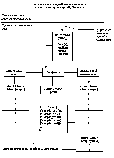 Рис. 2.3. Логическое представление открытия специального символьного файла