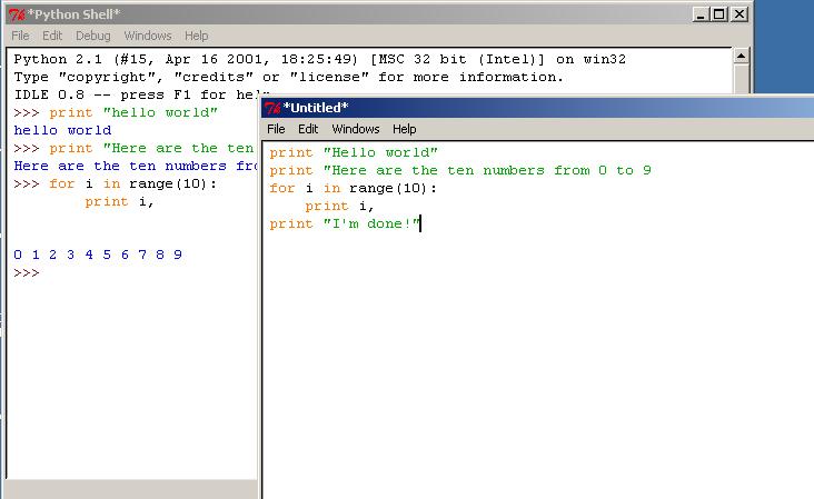 Во время наших упражнений с Питоном, мы переключались из одного режима в другой. Причиной этому является то, что интерпретатор - это мини-лаборатория для написания и тестирования небольших программ. После того, как мы всё протестировали, мы сохраняем наш код в файл.