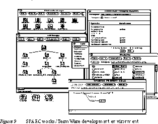 Линия продуктов Workshop компании SunSoft представляет собой самую передовую в промышленности UNIX-среду разработки. Workshop включает полный набор инструментальных средств для наиболее популярных языков, среди которых C, C++, Ада, Фортран. Многопотоковые компиляторы и отладчики позволяют легко создавать приложения, использующие преимущества многопроцессорных рабочих станций и серверов. SPARCworks — это набор инструментов, повышающих индивидуальную производительность труда разработчика, а SPARCworks/TeamWare содержит инструменты управления кодом, версиями, средства параллельного "make", которые позволят группам разработчиков координировать усилия при работе над крупными проектами (см. Рис. 6 ). SPARCworks/iMPact содержит средства построения многопотоковых приложений.