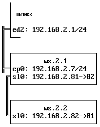 ifconfig ed1 inet 192.168.1.1 netmask 255.255.255.0На самом деле у нашего шлюза много интерфейсов и они будут конфигурироваться по мере надобности. Еще раз обращаю внимание на то, что номер и маска сети совпадают для всех машин этого сегмента.