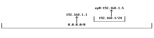 ifconfig ep0 inet 192.168.1.5 netmask 255.255.255.0присвоила интерфейсу ep0 номер 192.168.1.5, а также создала в таблице маршрутизации запись о том, что все пакеты с номером сети 192.168.1.0/24 будут направляться прямо через этот интерфейс с использованием протокола ARP.
