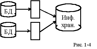 Данный вариант свободен ото всех недостатков предыдущей схемы. Более того, после установления синхронизации данных информационного хранилища с основными БД возможен перенос пользовательских интерфейсов на информационное хранилище, что существенно повысит надежность и производительность, позволит организовать распределенные рабочие места.