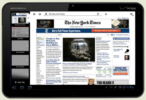 Спустя две недели после обнародования эскизов интерфейса Firefox, специально оптимизированного для использования на интернет-планшетах, объявлено о начале формирования ночных тестовых сборок продукта Firefox for Tablets. Версия для планшетов поддерживает платформу Android и основана на браузере Firefox Mobile, изначально адаптированном для работы на небольших экранах смартфонов. По сравнению с Firefox Mobile интерфейс версии для планшетов видоизменен с учетом более высокого экранного разрешения.