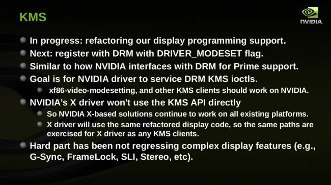 Потому что упертые болваны. И теперь усиленно пытаются закостылить свой DRM/KMS выносок. Проприетарный. Сколько они грабель соберут на этом пути - понятно думаю. Потому что на проприетарь в лине махали факами и при изменениях в ядре никто не будет учитывать нвидию, как обычно.