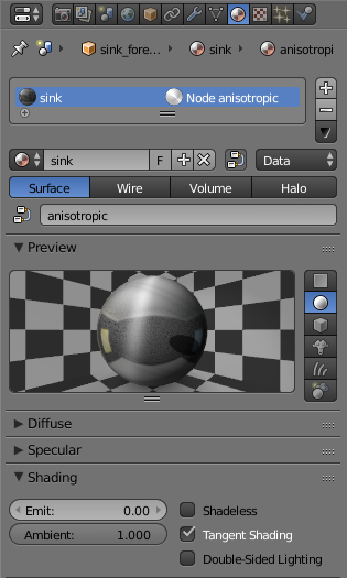 - Добавлена поддержка опции Tangent Shading для материалов. Эта опция может использоваться для имитации анизотропных поверхностей, например, полированного металла, волос и т.п.