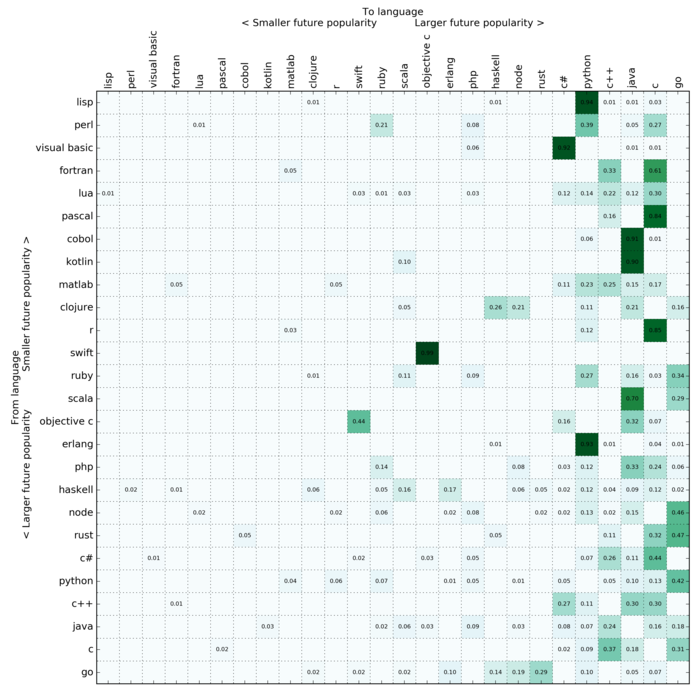 Стоит сказать, что статистика эта получена посредством автоматизированного поиска в Google постов с шаблонами вида "moved from X to Y" по всем возможным комбинациям глаголов, X-ов и Y-ков.