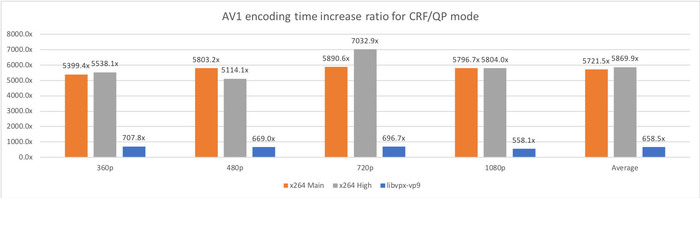 > Времени кодирования AV1 ко времени кодирования другим кодеком.