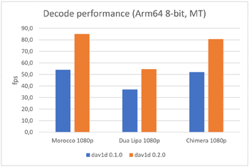 По сравнению с dav1d 0.1.1 прирост 50%. С 8-ю потоками похоже реально в 2 раза быстрее будет.