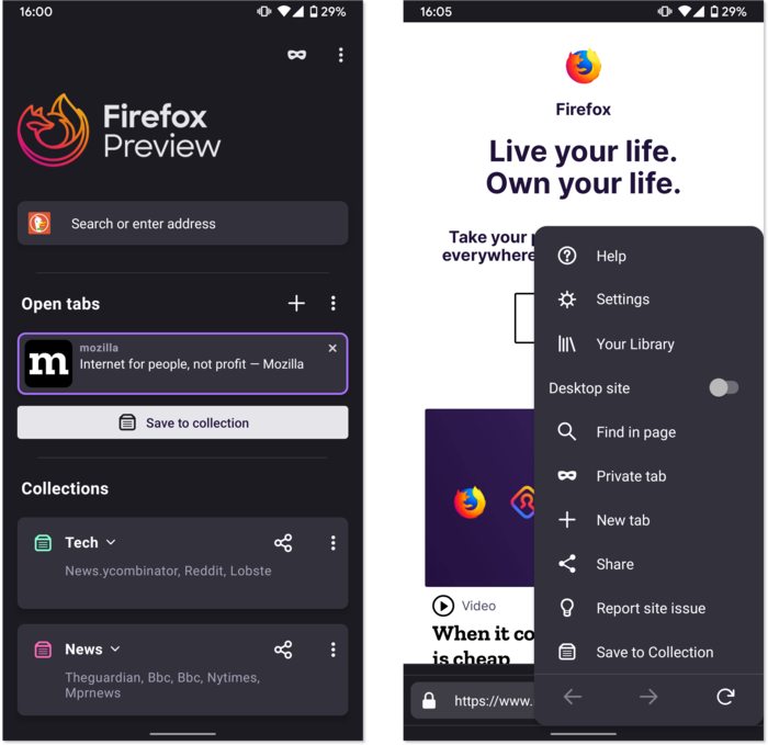 Firefox Preview это Fenix, недоделка на компонентах Gecko для Android, форкнутых из Fennec с не до конца убранными хвостами