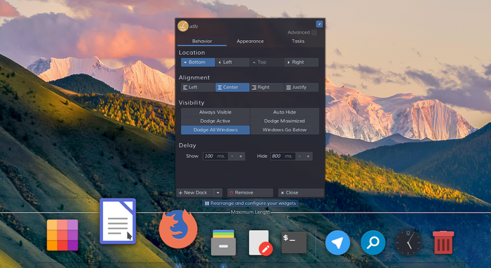 Док - хорошая концепция. Но мне, почему-то, больше зашла Dash-to-Panel с интуитивным сокрытием самой панели.