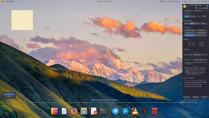 проверил его на плазме. он либо вверху либо внизу может располагаться. при этом на него виджеты расположить нереально. те же часы. короче если копировать стиль мака.... ну еще куда ни шло, но есть проблема - нет реально хорошего меню на него. если хочешь кнопку меню , надо отдельно виджет кидать на раб стол. короче не продуман он до конца.
