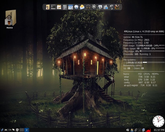> 165 процессов, 722 МиБ ОЗУ, JWM.