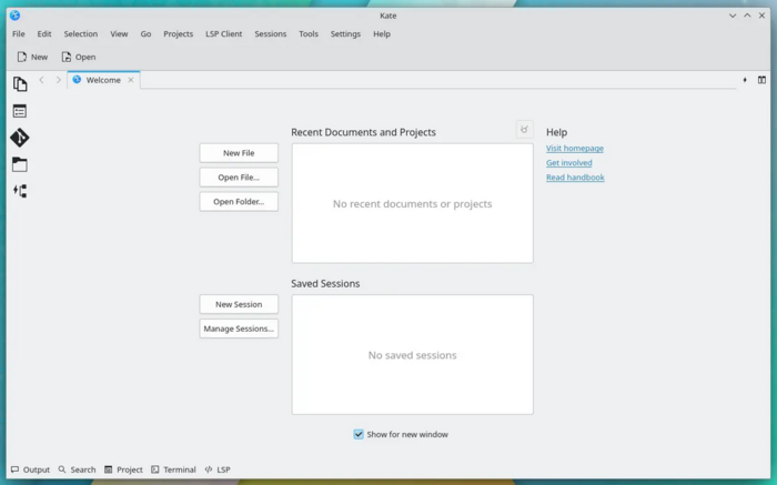 KATE. Добавили экран welcome - мелочь сущая, не иззменение. Но зато еще добавили запись макросов - неплохо.