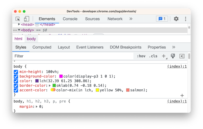 >Реализована полная поддержка спецификации CSS Color Level 4