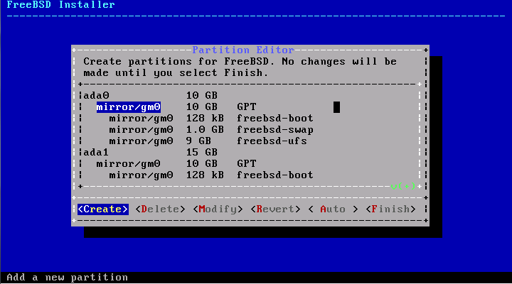 3. нужно сделать диск ada0 загрузочным, ведь мы зеркалируем не весь