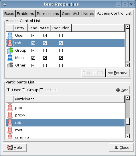 Однако, если я сначала активирую поле Default и затем дважды щелкаю на rob, то я изменяю второй тип доступа,