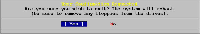 Используйте клавиши стрелок для выбора "Exit Install" в Главном Меню Установки и выхода из него. После чего появится сообщение: