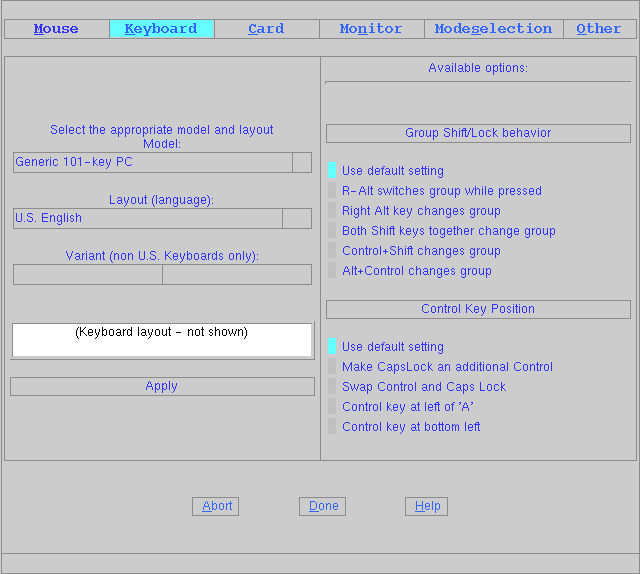 Для моей клавиатуры подошли стандартные настройки по умолчанию. Выбирите необходимые настройки для вашего случая и нажмите "Apply". Вы всегда можете изменить настройке позже, прямо в файле конфигурации.