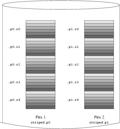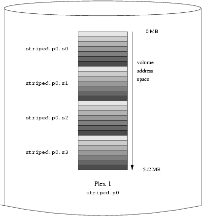 Новосозданный том представлен на Figure 13-6. Плотность заштрихованных участков показывает расположение страйпов в адресном пространстве набора (от светлых к темным).