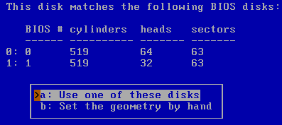 Тут нам разрешают использовать данные о геометрии жесткого диска, собранные мастером оборудования, или задать свои. Я использовал данные, определенные мастером. После этого наступает черед очень опасного выбора. Нужно решить, использовать все пространство, доступное на этом диске, или только часть из него. Выбирать использование части стоит в том случае, если на диске есть разделы других операционных систем или вы желаете их создать в дальнейшем. При использовании всего пространства данные, раннее находившиеся на этом диске, будут уничтожены.