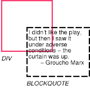 Рассмотрим следующий пример вывода блока (BLOCKQUOTE), размер которого превышает размер его контейнера (назначенного элементом DIV). Исходный документ имеет вид: