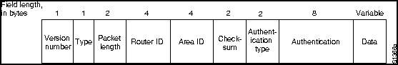 За полем контрольной суммы идет поле типа удостоверения (authentication type). Примером типа удостоверения является "простой пароль". Все обмены протокола OSPF проводятся с установлением достоверности. Тип удостоверения устанавливается по принципу "отдельный для каждой области".