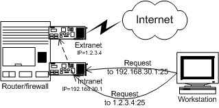 # description: trivial port forwarding of external SMTP requests to actual port