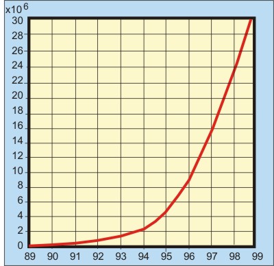 Рис. 2. Рост числа узлов Интернет в 1989-99 годах