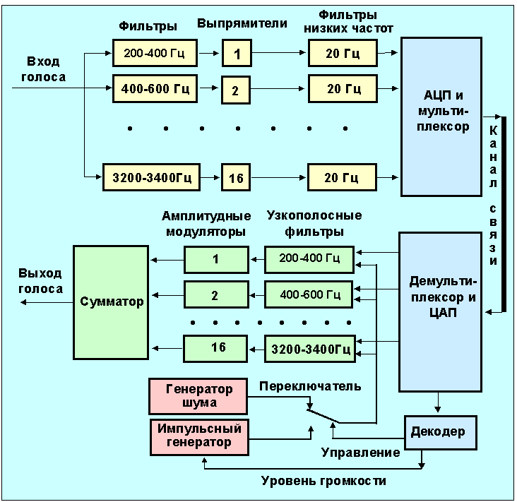 òÉÓ. 2.4.2.1. âÌÏË-ÓÈÅÍÁ ËÏÄÉÒÏ×ÁÎÉÑ/ÄÅËÏÄÉÒÏ×ÁÎÉÑ ÞÅÌÏ×ÅÞÅÓËÏÇÏ ÇÏÌÏÓÁ (Vocoder) |