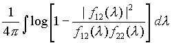 (в последнем выражении интегрирование ведется в пределах -p ё l ё p для дискретного времени t и в пределах -╔ <l <╔ для непрерывного t), где fz z (l) - спектральная плотность гауссова процесса z (t), функция f(l) имеет вид