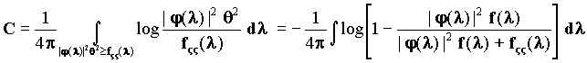 Рассмотрим канал связи, на входе которого сигналы образуют стационарный процесс x 1 = x 1(t), M[x 1(t)]2 < ╔. Пусть при прохождении сигнала x 1 = x 1(t) он подвергается линейному преобразованию Aj со спектральной характеристикой j (l) и, кроме того, на него накладывается аддитивный стационарный гауссов шум z =z (t), так что на выходе канала имеется случайный процесс x 2(t) вида x 2(t) = aj x 1(t) + z (t). Предположим также, что ограничения на входной процесс состоит в том, что M[ x 1(t)]2 ё D 2 (постоянная D 2 ограничивает среднюю энергию входного сигнала). Пропускная способность такого канала может быть вычислена по формуле