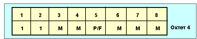Рис. 4.3.3.12 Формат поля управления ненумерованных кадров m - бит модификатора функции (см. таблицу 4.3.1.2). Мультиплексирование на уровне 2 осуществляется за счет использования отдельного адреса для каждого LAP (link access procedure) в системе. Адрес содержит два байта и определяет приемник командного кадра и адрес передатчика кадра-отклика. SAPI используется для идентификации типа услуг. Если наряду с цифровым телефоном используется обмен данными, то эти два терминала будут подключены к разным типам сервиса и, вообще говоря, к разным сетям. Для каждого вида услуг фиксируется определенный код SAPI. TEI (terminal endpoint identifier) обычно имеет определенное значение для каждого из терминалов пользователя. Комбинация SAPI и TEI однозначно описывает LAP (link access procedure) и определяет адрес второго уровня. Так как в системе не может быть двух идентичных TEI, коды TEI распределяются следующим образом: